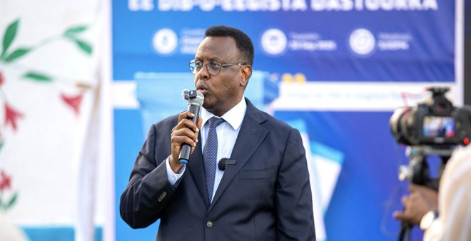 Wuxuu sidoo kale ka hadlay Wasiir Xasan Macalin arinta Dastuurka, wuxuuna xusay in Xukuumadda DanQaran ay ka go’an tahay dhameystirka Dastuurka dalka ee mudada dheer qabyada ah.