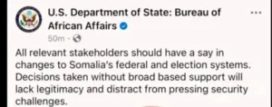 Dowladda Mareykanka oo war kasoo saartay arrimaha doorashooyinka Somalia