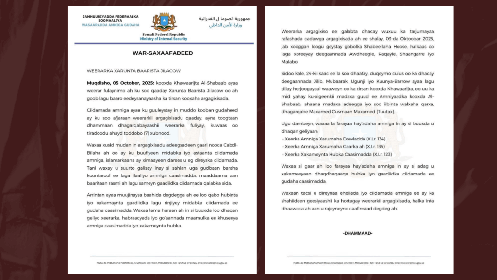 Wasaaradda Amniga Gudaha ee Dowladda Federaalka ayaa sheegtay kaliya 7 ka mid ah dagaalyahanka Al-Shabaab in la dilay.